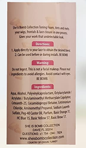 She is bomb collection Toning Foam, tints and melts your wigs, frontals & lace closures in one process. Gives your work that undetectable look.